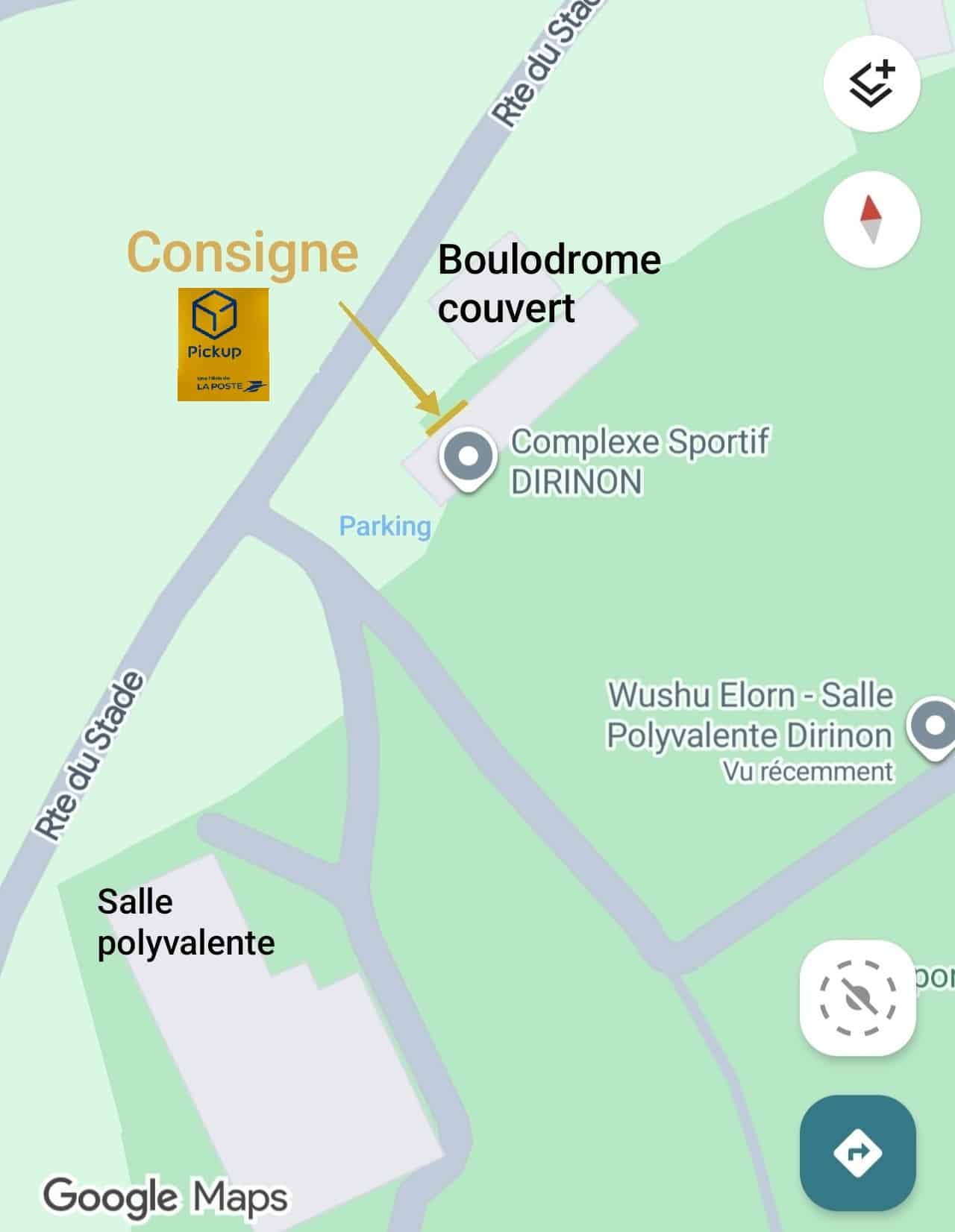 L’implantation de cette consigne Pickup est prévue « rue du stade », au niveau du complexe sportif, près de la salle polyvalente (Cf plan).
