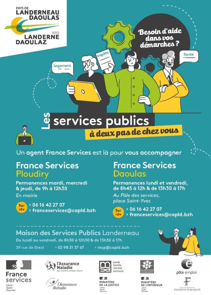 - A Daoulas, au Pôle des services, Place Saint-Yves : lundi et vendredi de 8h45 à 12h00 et de 13h30 à 17h.